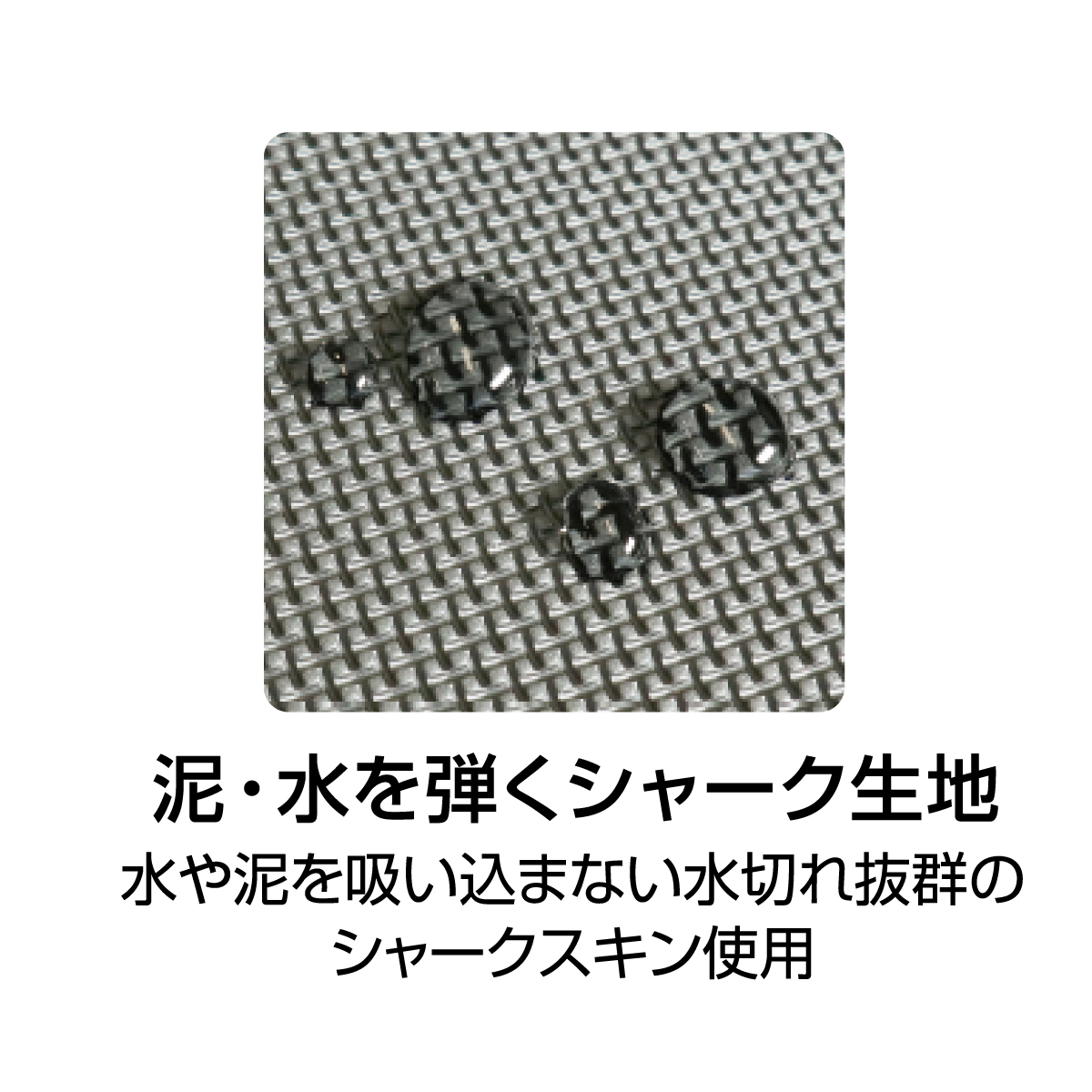 本体表面素材は水切れの良いシャークスキン。