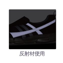 靴サイドに反射材、本体に簡易撥水生地使用