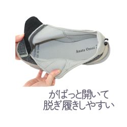 履き口が、がばっと大きく開いて履きやすく簡単に脱ぎ履き出来ます